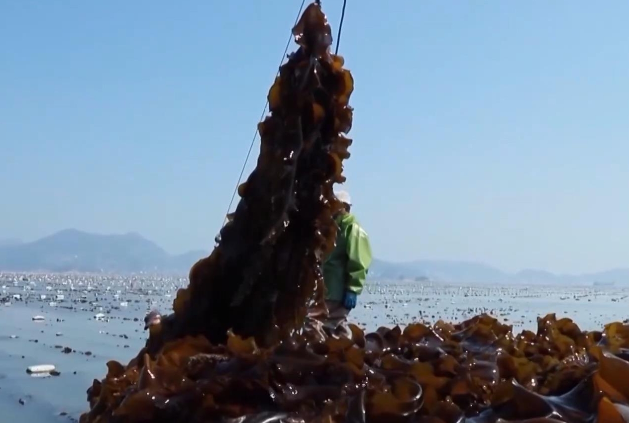 一系列海水养殖品种种源攻关取得突破,有力支撑了海洋渔业的快速发展。在福建连江县,5万多亩海带新品种“无边海带”正在采收。
