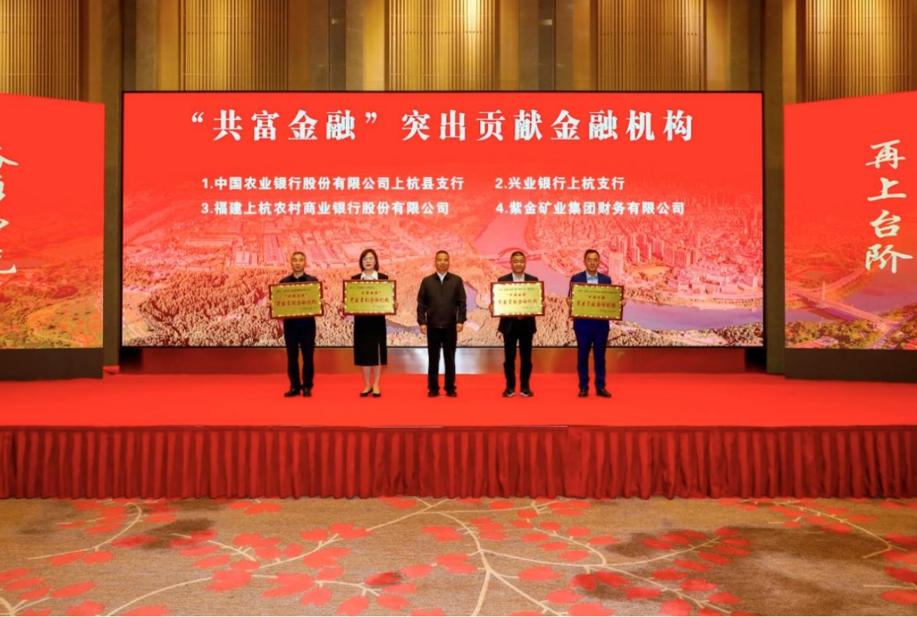 近日,上杭县委、县政府召开2026年企业家新春座谈会,会上对过去一年为地方经济发展作出突出贡献的金融机构与企业进行了表彰。兴业银行上杭支行凭借其在服务实体经济、推动共同富裕方面的卓越表现,连续两年荣获中共上杭县委、上杭县人民政府颁发的年度“共富金融”突出贡献金融机构称号。