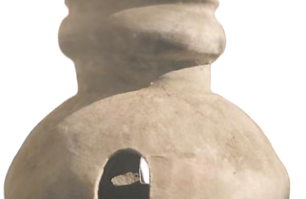 陶制器具器壁厚度均匀,孔洞分布呈不规则排列。最特别的是其上下通透的设计,底部留有更大的圆形通孔,形成“上窄下宽”的漏斗状结构。这种形制与当地传统捕蛙陶罐有明显差异,孔洞的大小和分布密度,既不会让蟾蜍轻易逃脱,又能保证声音的有效传播。
