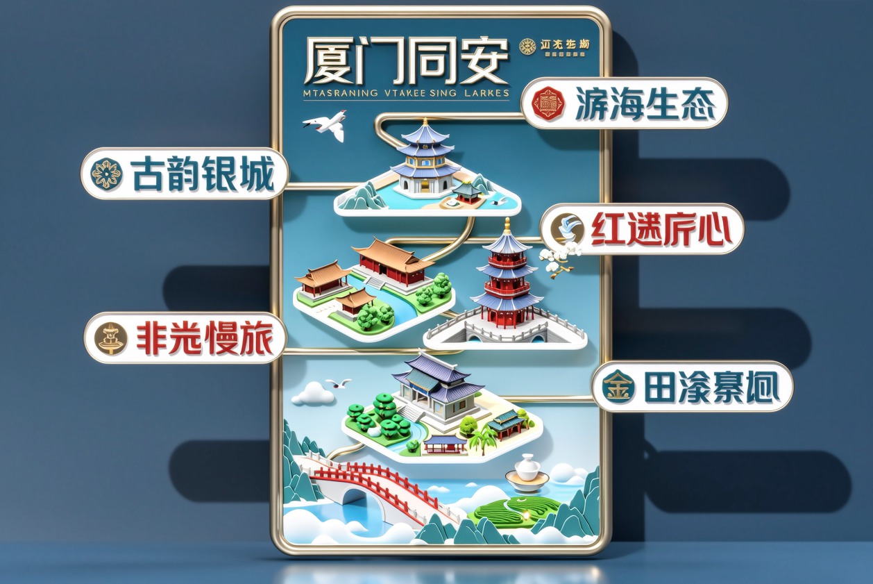 本次发布的旅游线路强调深度体验与业态融合。其中,“滨海风情·环东浪漫潮玩线”将彩虹跑道、水上运动与方特烟花秀串联,主打年轻态度假;“古韵悠悠·探秘千年银城”依托孔庙、县衙旧址等历史遗存,结合北辰山自然景观,重拾千年文脉之旅。此外,针对当下热门的非遗研学、乡村疗愈及银发康养市场,同安推出包含军营村茶山云海漫步以及盛之乡温泉疗养等特色内容的专属线路,并配套“舌尖上的同安”美食专线。