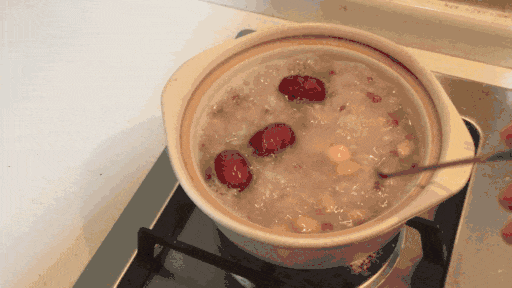 待糯米开始呈现出黏性时,放入一定数量的红糖(红糖放多少因人而异),此时应使用慢火煮3分钟(如果火太旺,糯米因黏性大容易烧焦)。