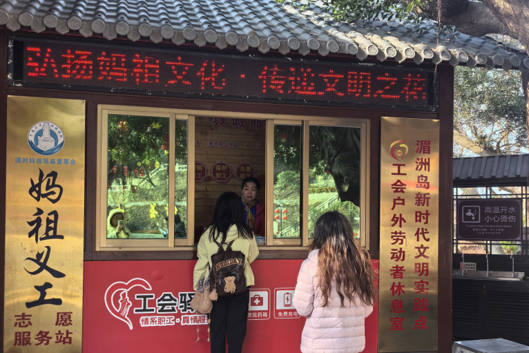 在妈祖慈善基金会和妈祖义工志愿服务站,调研团看到一幅生动的爱心地图:群众可通过线上小程序、社区服务点等渠道“点单”,提出生活帮扶、物资救助、便民服务等需求;志愿者们则根据“订单”类型,快速“接单”响应,无论是为孤寡老人送餐,为留守儿童辅导功课,还是为上岛游客提供指引、应急救助,为困难家庭送去助学金、生活物资,每一项服务都做得细致入微。来自海峡两岸的志愿者们身着红马甲,穿梭在岛上的街巷、码头、景区,忙碌的身影成为湄洲岛最动人的风景,也让妈祖大爱无疆的精神有了最鲜活的注脚。