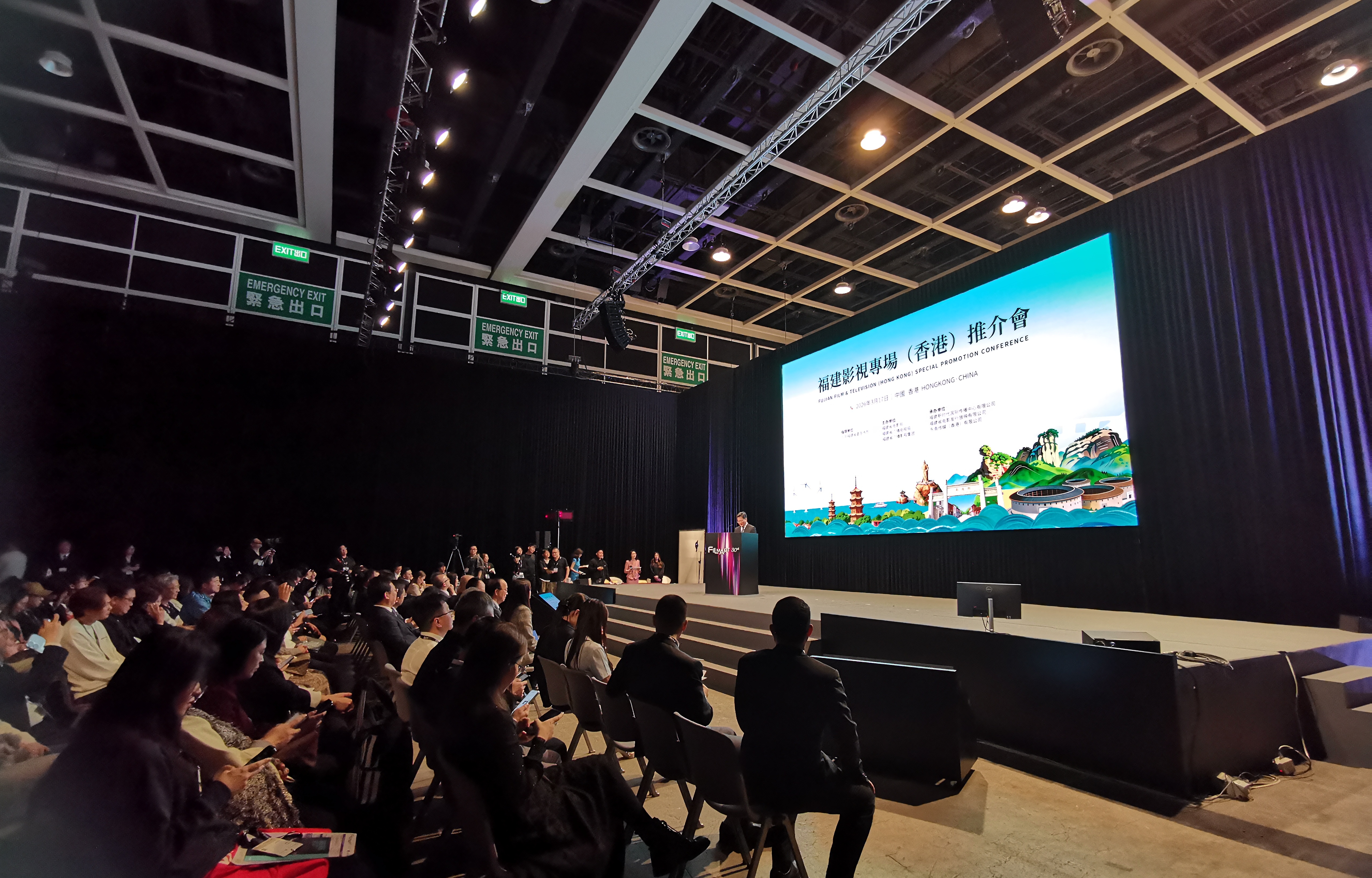 福建日报·新福建客户端3月17日讯(记者 林清智)3月17日,福建影视专场(香港)推介会在香港会议展览中心影剧院举行。作为第30届香港国际影视展的配套活动,本次推介会由福建省委宣传部指导、福建省电影局主办,以“有福电影 合作共赢”为主题,通过参观展示、政策解读、项目推介、签约合作等形式,展现福建影视产业发展成果与合作潜力,搭建闽港影视深度合作桥梁。福建省委宣传部、香港贸发局、香港福建社团联会、香港电影制片家协会等相关负责人出席并致辞,香港各界知名人士、福建影视企业代表等200余人参加活动。