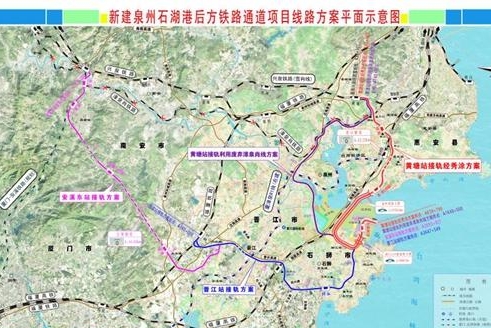 新建泉州石湖港后方铁路通道项目线路方案平面示意图。泉州交发集团 供图