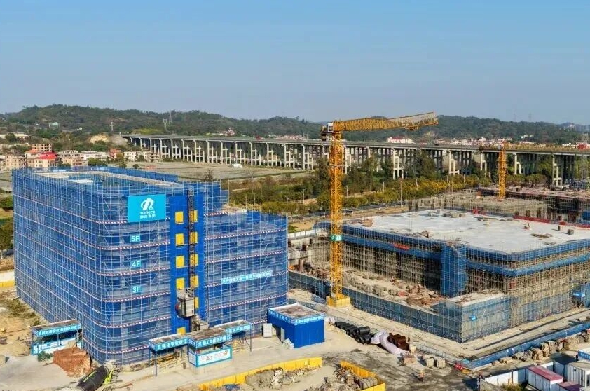 “目前,项目土建主体工程已按期完成,进入土建收尾和设备安装的关键阶段,施工总进度完成约90%。计划5月底完成上部公园框架层及附属设施、绿化等部分的施工,6月底进入调试、试运行阶段。”项目负责人吴少平介绍道,“我们加大项目资源投入,现场共有350余名工人,4台塔吊、3台汽车吊、2台施工电梯等大型机械设备投入使用,已全面进入高效作业状态,正在全力冲刺主体工程完工。”