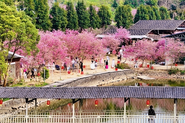 眼下,闽侯县龙台山生态园内,十多亩近500株樱花次第盛开,形成一片浪漫的粉色花海,吸引众多市民游客前来赏春,并受到央视等媒体关注。