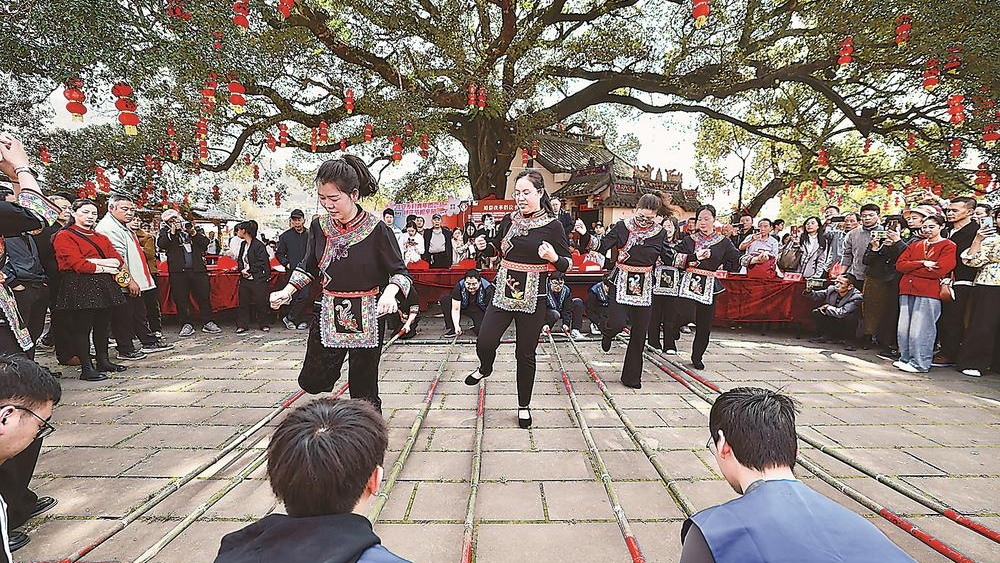活动现场,《畲家山水谣》《十里桃花》《穆云桃花开》《竹竿舞》等精彩节目轮番上演,不少游客还在桃林中拍照留念,记录下春日盛景。“穆云的桃花开得特别美,我每年都来,不仅能欣赏到正宗的畲歌、平讲戏,还能体验畲族的特色民俗,玩得非常开心。”专程带着家人前来打卡的游客郑巧珍笑道。