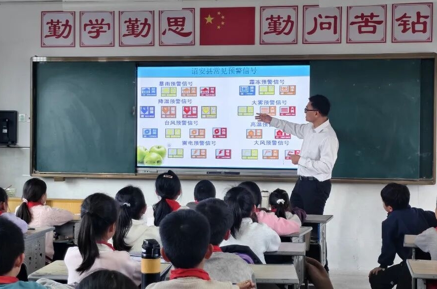 诏安县气象局副局长杨富曾以生动有趣的语言,向少先队员们讲解了风、雨、雷的形成原理及气象灾害防御知识。互动问答环节中,队员们踊跃发言,现场气氛热烈,进一步激发了队员们探索气象奥秘的热情。