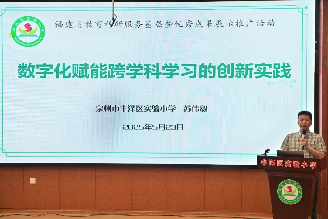 该课题紧扣教育数字化转型时代脉搏,锚定跨学科协同育人方向,重点探索数字化技术与跨学科育人深度结合的路径与方法。课题组组建全学段跨学科实验团队,形成“高校-小学-名师工作室”三者研究合力,搭设“国—省—市—区”四级课题矩阵,构建了“一体两翼”实践体系与“三维五阶”学习范式,提炼“五点跨学”“五点赋能”等教学策略,促进“教—学—评—研”一体化,推动育人方式变革,全面提升学生核心素养。学校先后承办福建省教育科研服务基层暨优秀成果展示推广活动、泉州市课题中期汇报展示活动、丰泽区课题成果专场推广活动,让研究成果从校本实践走向区域共享,让“丰实经验”在更大范围落地生根。