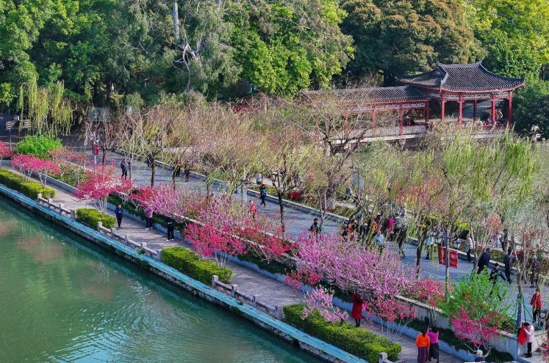 ▲西湖公园桃红柳绿 包华/摄