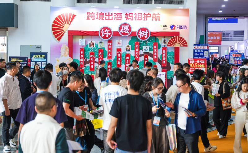 妈祖文化展区内,精美时尚的妈祖手办、精巧雅致的祈福冰箱贴、寓意顺遂的伴手礼等文创产品备受客商青睐,将传统信俗转化为可触摸、可传播、可贸易的文化商品;“妈祖文化与中华出海史”主题分享,梳理从古代海上丝绸之路到数字跨境电商的出海脉络,阐释文化传承与商业创新的内在关联;祈福许愿墙前,海内外客商参与互动、打卡合影,寄托对跨境贸易畅通、航程顺遂的美好祝愿,成为展会人气打卡点。