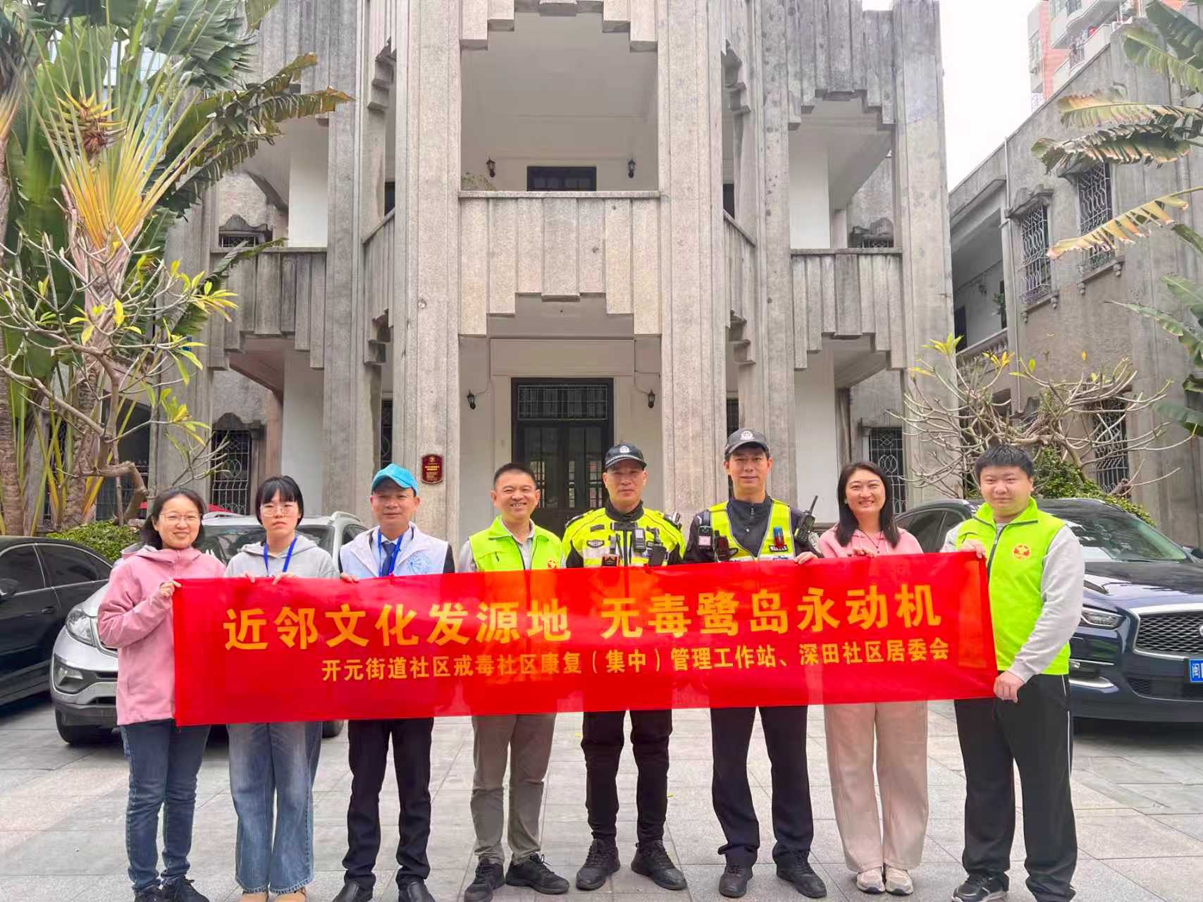 作为“近邻文化”发源地,深田社区以禁毒科普与组织禁毒志愿者参与旧址参观相结合,既让居民掌握禁毒、金融防范及交通安全知识,也让禁毒志愿者在沉浸式爱国主义教育中锤炼责任担当,夯实“无毒社区”基础。