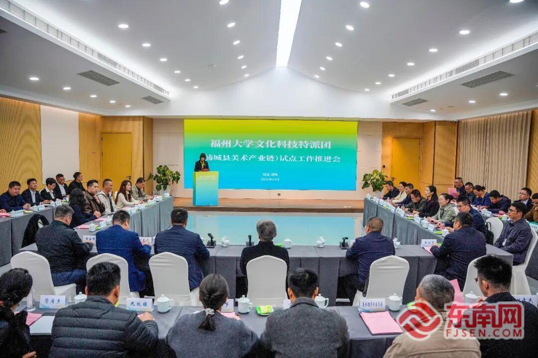 会上,浦城县委常委、宣传部部长胡军汇报浦城县特派团试点工作开展情况,张健汇报特派团试点工作开展情况并解读《浦城县美术产业链(2026-2028)发展规划》,浦城县文体和旅游局、教育局、工信局、仙阳镇、枫溪乡、浦丰集团主要负责同志汇报各单位围绕美术产业链开展的工作情况及下一步工作计划,福州大学厦门工艺美术学院黄晓瑜、万吉欣、林天宇、梁青、李双5位老师分别汇报相关工作开展情况。