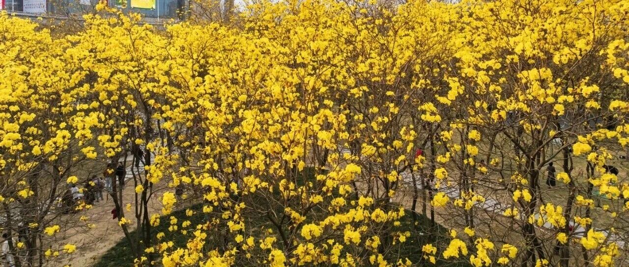 当黄色“风铃”挂满枝头时,从空中俯瞰,公园宛若一座巨大的“城市花盆”。