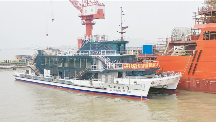 据了解,“鹭江会客厅”总长46.9米,设计水线长45.72米、型宽15米、型深3.4米,设计吃水2.23米,总吨位约980吨,配备2台600千瓦推进电机,兼具观景、商务、餐饮、娱乐等多元功能,能更好地满足高端接待、主题观光等市场需求,预计今年5月交付使用。