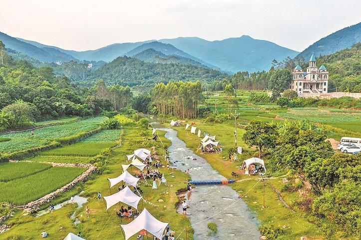 溪畔露营,享受悠闲时光。(陈起拓 摄)