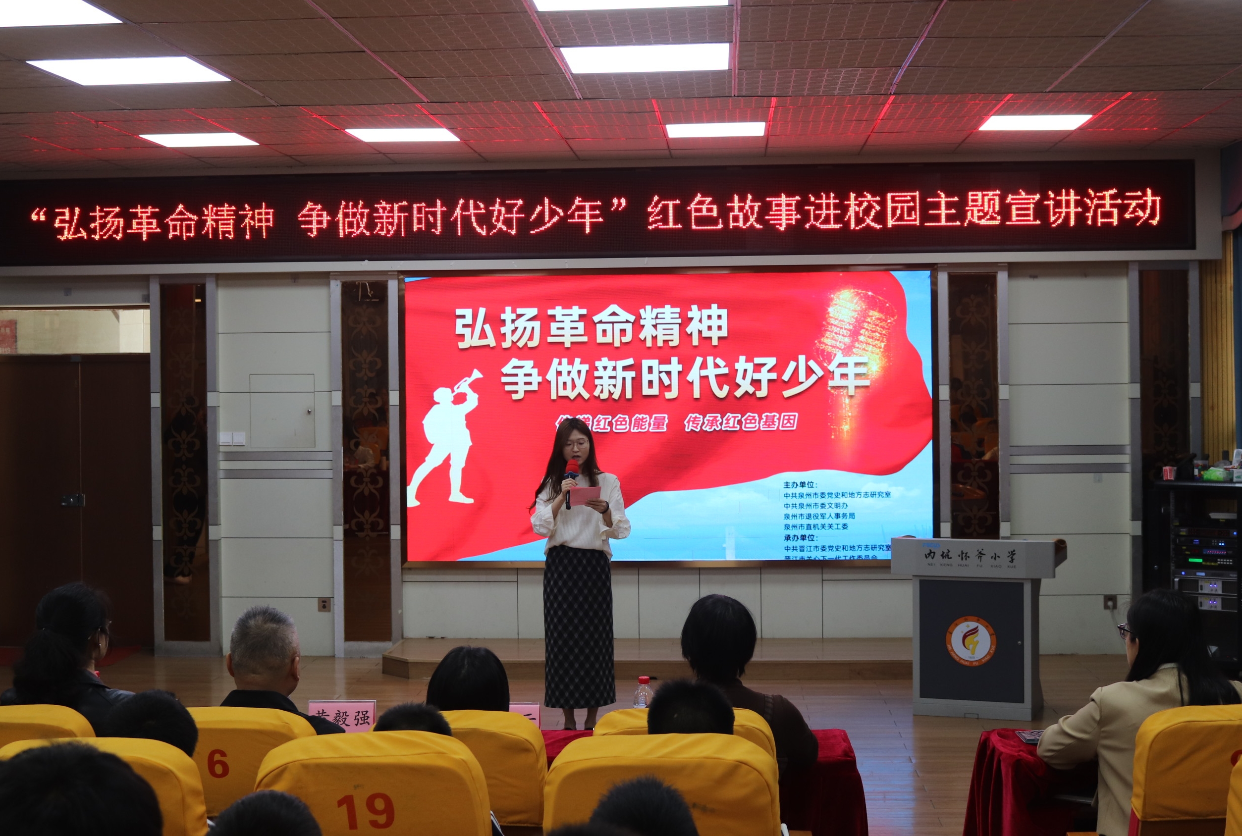 为充分发挥泉州本土红色资源铸魂育人作用,引导广大青少年在红色故事中弘扬革命精神,赓续红色血脉,践行社会主义核心价值观,争做担当民族复兴大任的新时代好少年,3月25日,“弘扬革命精神 争做新时代好少年”泉州红色故事进校园主题宣讲活动在晋江市内坑镇怀斧小学举行。