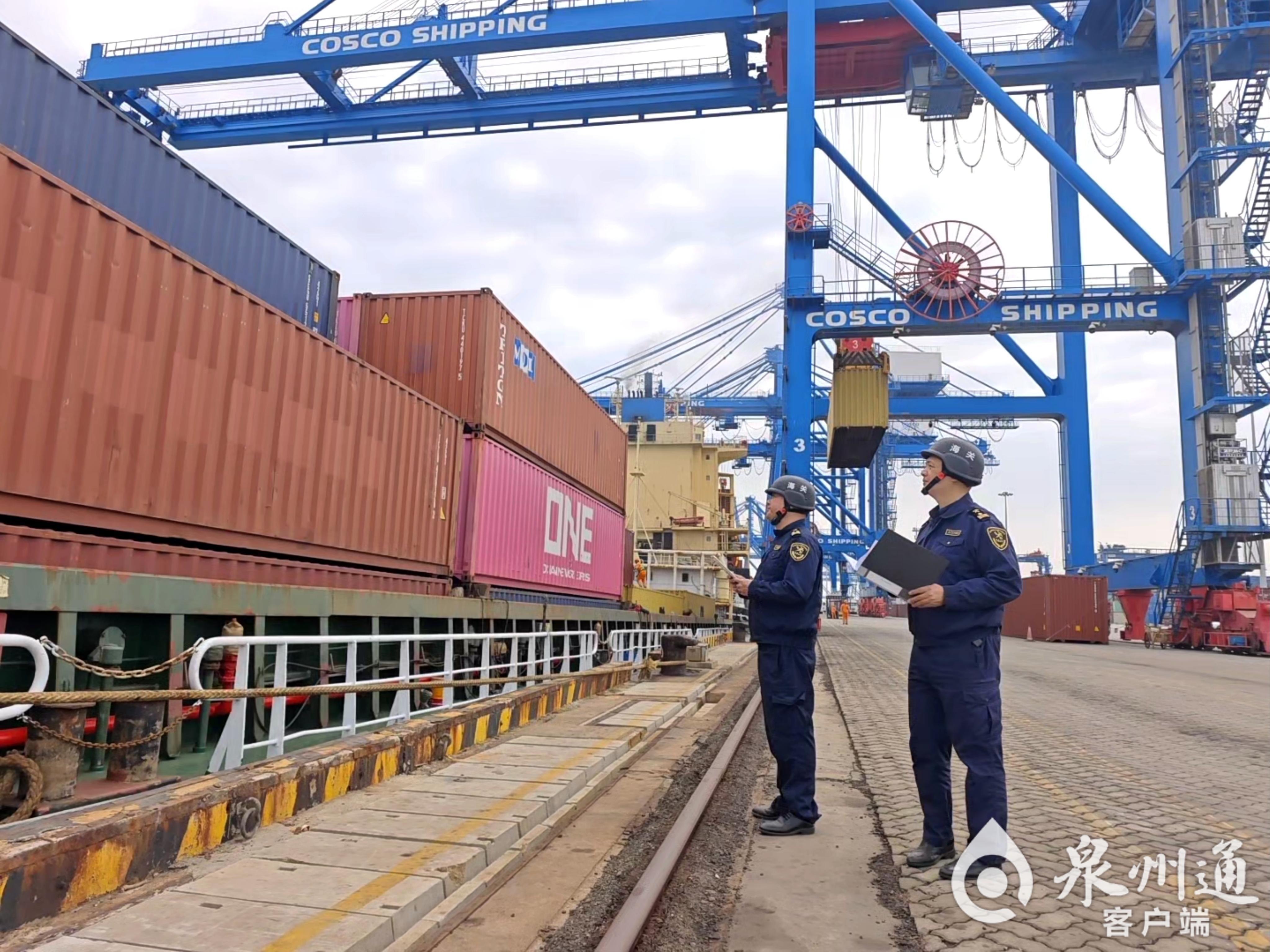 泉州海关关员对联通泉厦“海上巴士”进行监管