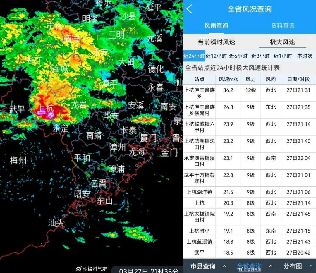 在华南准静止锋的影响下,27日夜间21~23时左右龙岩上杭等地出现伴随雷暴大风和冰雹的强对流天气,上杭局地测到12级强阵风,30~31日福建省大范围的强对流天气铺展,福州也有机会迎来今年的首轮强对流天气。