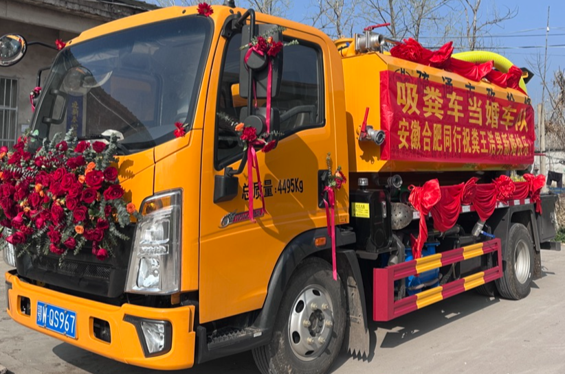 由吸粪车组成的婚车车队