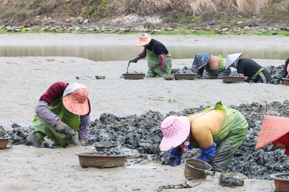 28日上午,记者走进三华园区螠蛏养殖基地,只见数十名工人身着水衣、脚踩胶鞋,在齐膝深的滩涂间来回作业。伴随着娴熟的手法,一只只海蛏被迅速采挖出泥,装入筐中。刚出水的海蛏经过分拣、清洗、称重后,立即被等候的客商抢购一空。
