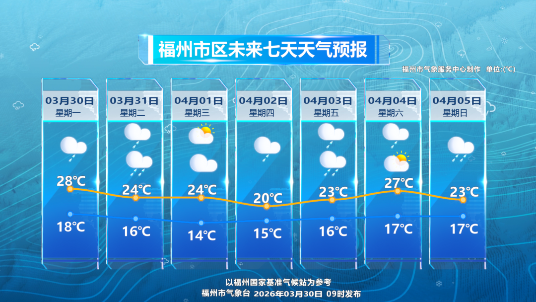 冷空气鼓动下,近期福州市沿海风力较大,30日到4月1日福州市沿海有7~8级阵风,海上作业和滨海旅游注意防范大风影响。