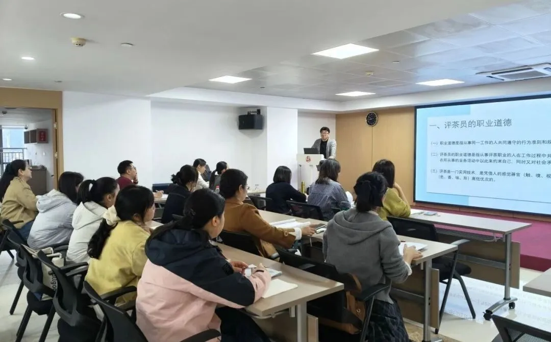 培训内容紧扣评茶员岗位核心需求,构建“理论 + 实操”双轨教学模式。课程重点讲解六大茶类基础知识,涵盖绿茶、乌龙茶、白茶、红茶等工艺及审评要点;深入茉莉花茶、黑茶专业领域,教授审评记录填写规范与感官审评计分方法;开展考前辅导与实操训练,确保职工熟练掌握操作流程。多样化的课程设置不仅帮助职工系统掌握评茶专业技能,更助力职工拓展职业发展空间,为职工职业晋升提供有力支撑。