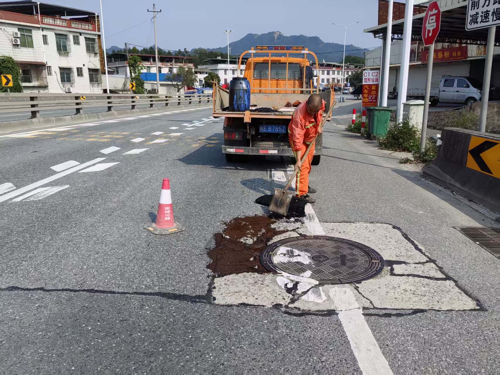 坑槽修补是路面养护的关键环节。南靖公路分中心以设备升级、效能提升为抓手,先后在丰田、通坑两个公路站配备沥青搅拌设备,通过优化设备布局,构建快速响应、高效处置的公路养护保障体系,切实解决国道因车流量大、重载货车密集造成路面坑槽病害反复出现的难题。