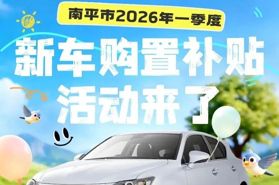 4月1日起可申请!南平2026年一季度新车购置补贴来了
