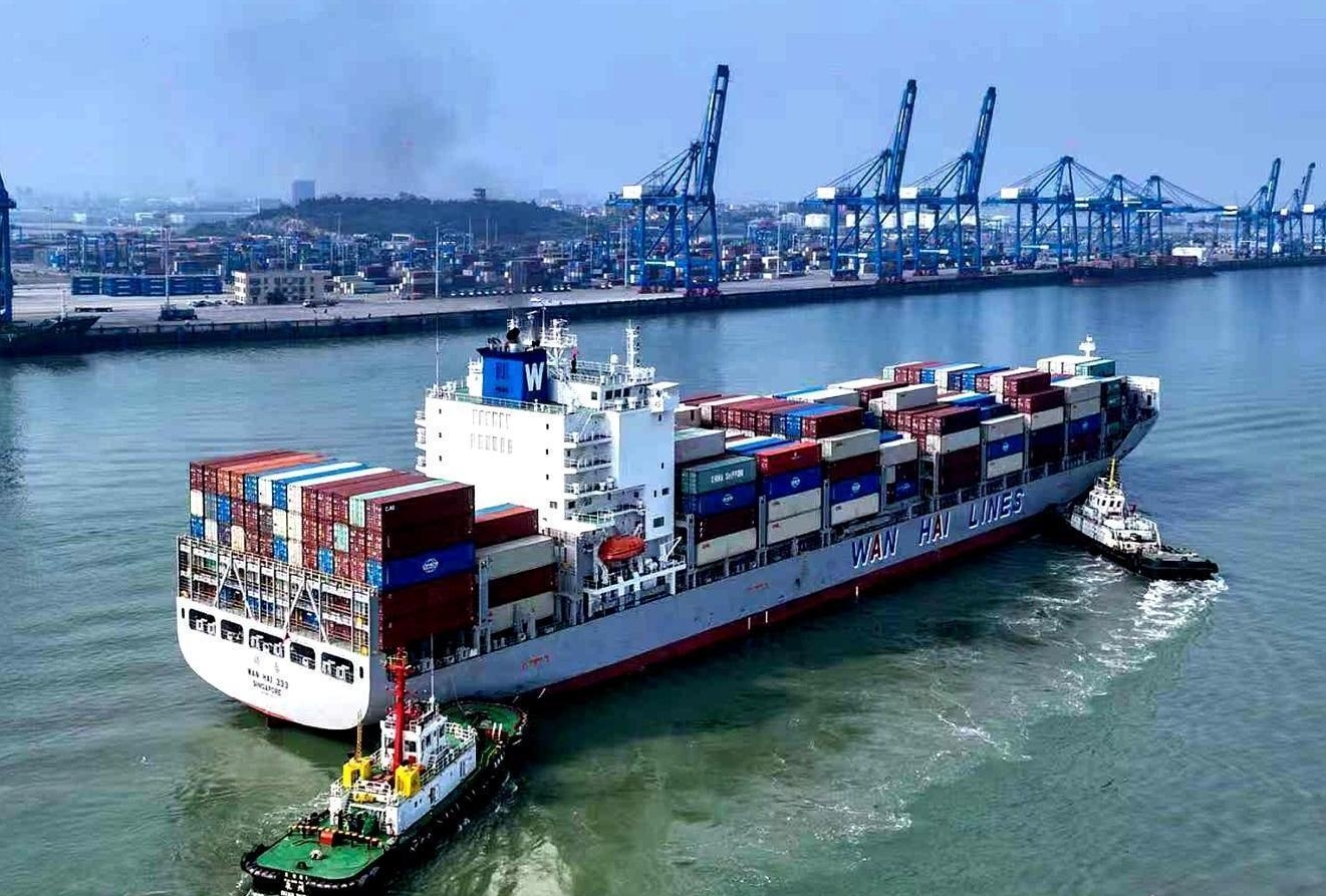 一艘外贸集装箱轮在泉州港石湖港区靠泊作业 (泉州晚报社融媒体记者 林劲峰 图)