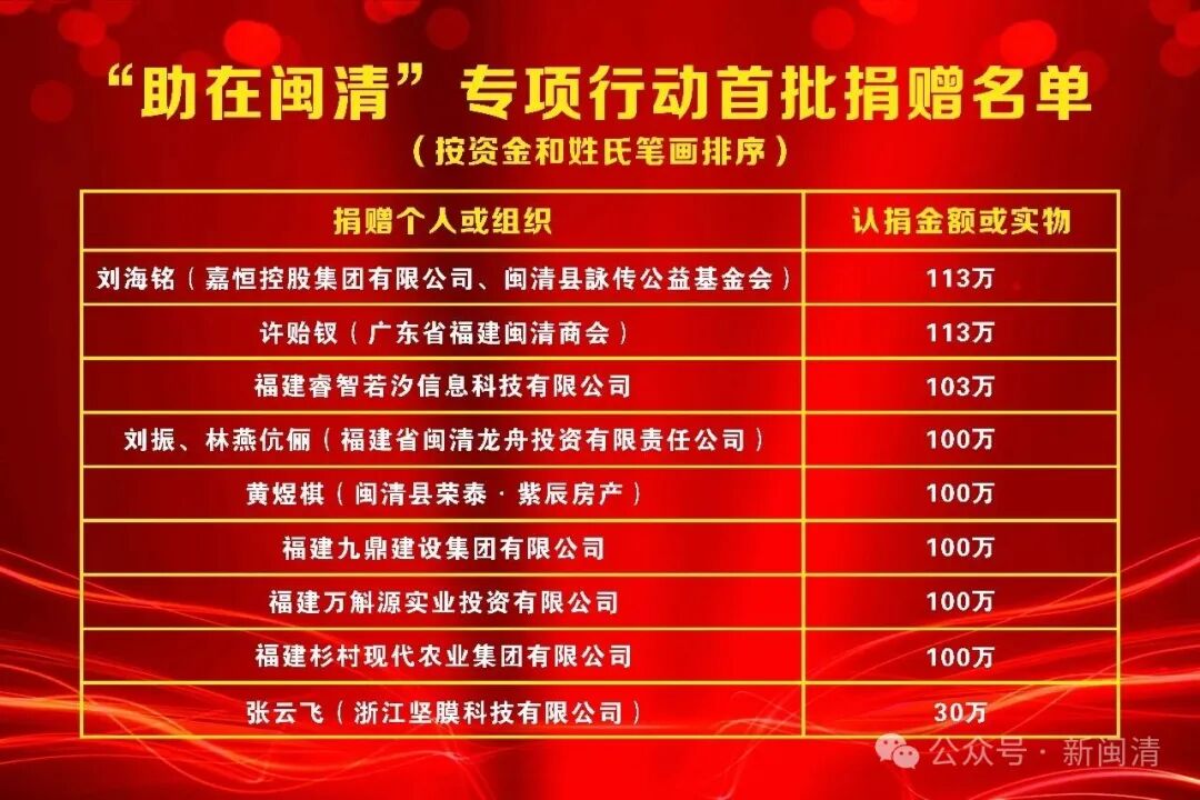 每一份捐赠都承载着对闽清的深情期许,每一份善意都将化为推动家乡进步的坚实脚步。感谢大家的慷慨解囊与无私奉献,让我们携手并肩,共筑闽清美好未来!