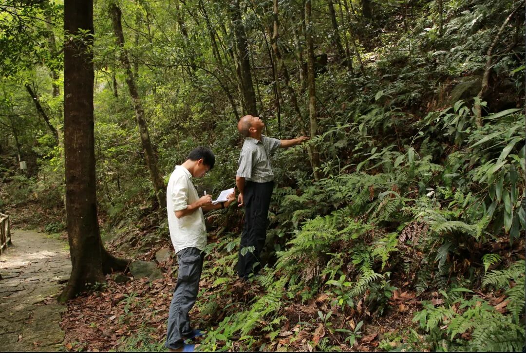 李振基教授(右)和团队成员一起在戴云山保护区进行调查。