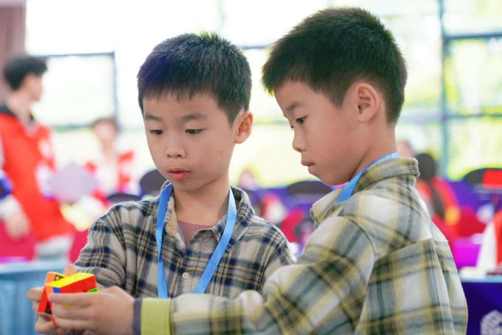 近日,在2026全国魔方系列赛(建阳站)中,厦门市同安区第一实验小学一年级双胞胎兄弟颜禹昕(哥哥)、颜禹恩(弟弟),在魔方二重奏项目中大放异彩,双双打破国家纪录,包揽该项目全组别冠亚军。这对出生于2019年的双胞胎,性格互补:哥哥沉稳执着、善抗压力,弟弟活泼敏捷、反应迅速,是赛场上的默契搭档。