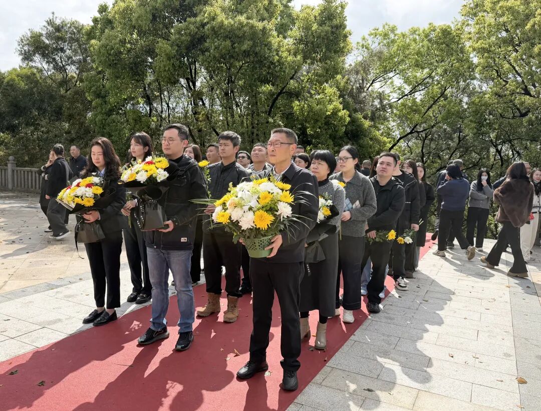 活动当天,区总工会党组书记何盈一行携基层工会代表怀着无比崇敬的心情列队步入烈士陵园。在革命烈士纪念碑前,大家手持鲜花、神情肃穆、整齐列队,面向革命烈士纪念碑集体默哀,以此寄托对革命先烈的深切缅怀与崇高敬意。随后,大家缓步上前,向革命烈士纪念碑敬献鲜花,用最朴素的方式表达对先烈的无限追思。