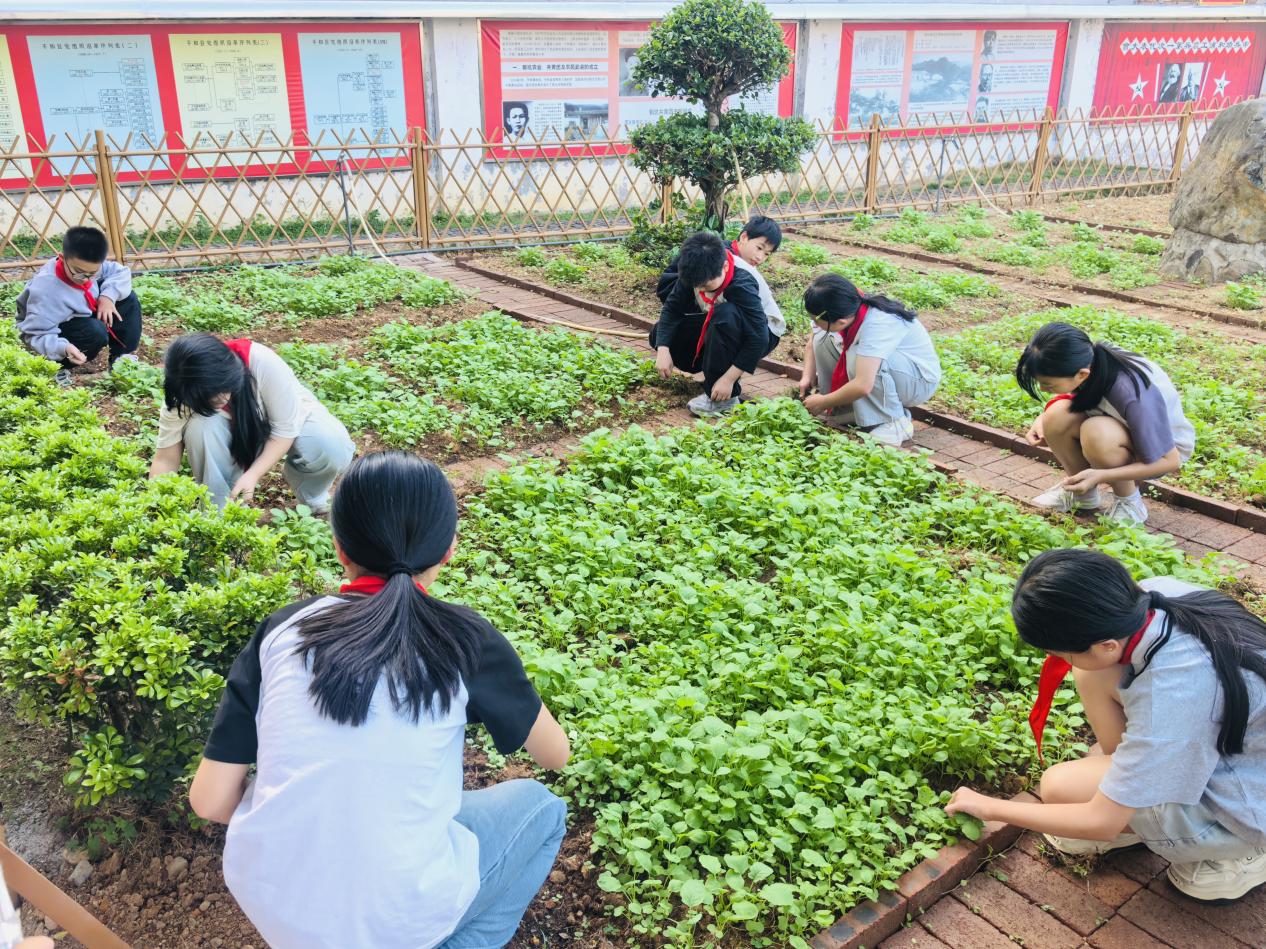 据了解,国强中心小学充分挖掘乡村本土田园资源,巧用校园闲置空地,因地制宜打造了这片充满生机与活力的劳动实践基地。基地划分出种植区、养护区等多个特色功能区,学校结合不同学段学生的年龄特点、动手能力和认知水平,量身定制劳动任务、合理分配劳动岗位,让每个孩子都能拥有自己的“责任田”,在亲身耕耘中学习农耕知识、掌握劳动技能,在悉心呵护中懂得珍惜与守护,在收获成果中体会劳动的快乐与价值。