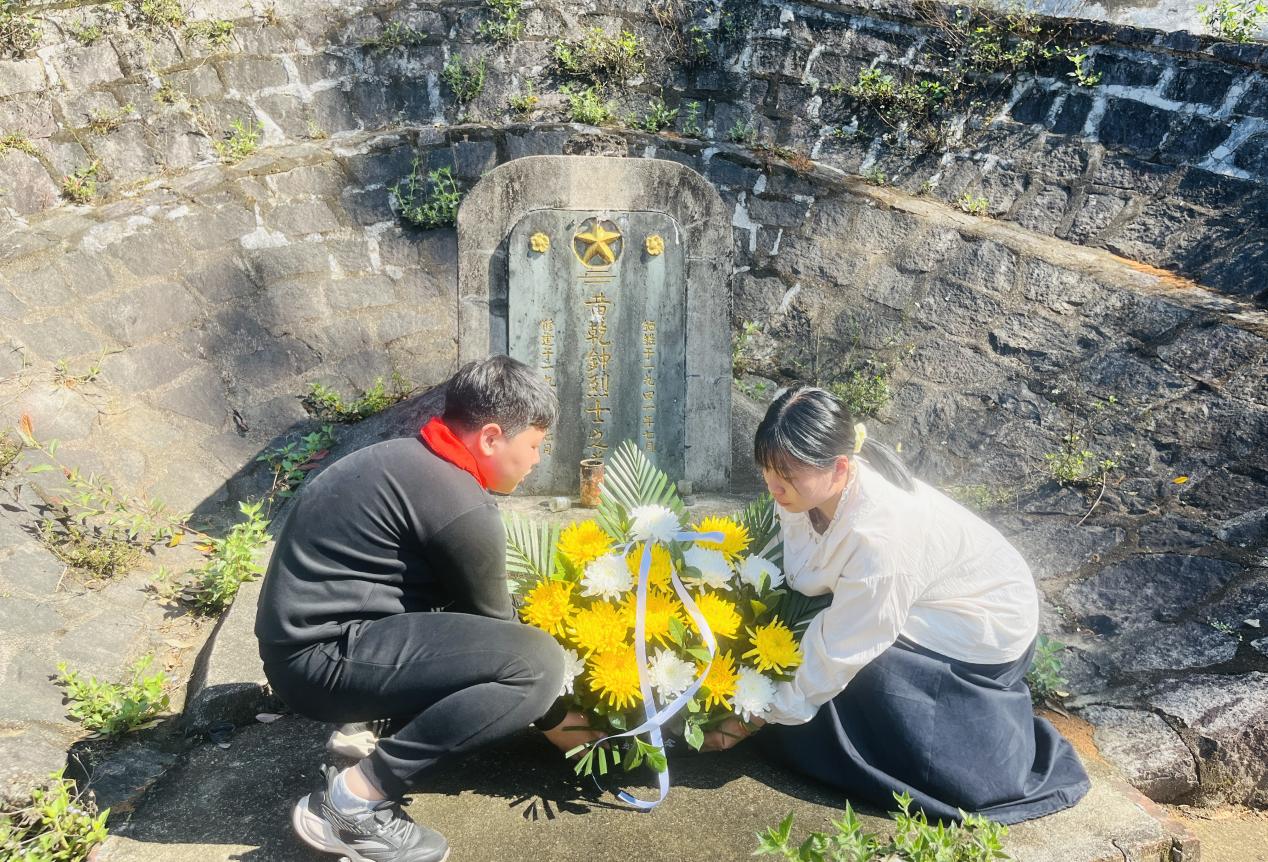 在庄严肃穆的烈士墓前,师生们手持洁白菊花,神情肃穆,依次缓步上前,郑重向黄乾钟烈士敬献花篮与鲜花,以最诚挚的敬意缅怀革命先烈的丰功伟绩,回望那段波澜壮阔的峥嵘岁月。默哀环节中,全体师生垂首肃立,在静默中追思先烈们为民族解放、国家独立和人民幸福,抛头颅、洒热血,用生命铸就的不朽功勋。现场氛围凝重肃穆,每个人心中都满含悲痛与崇敬,默默立下誓言,定当珍惜当下来之不易的和平生活,不负先烈牺牲奉献。