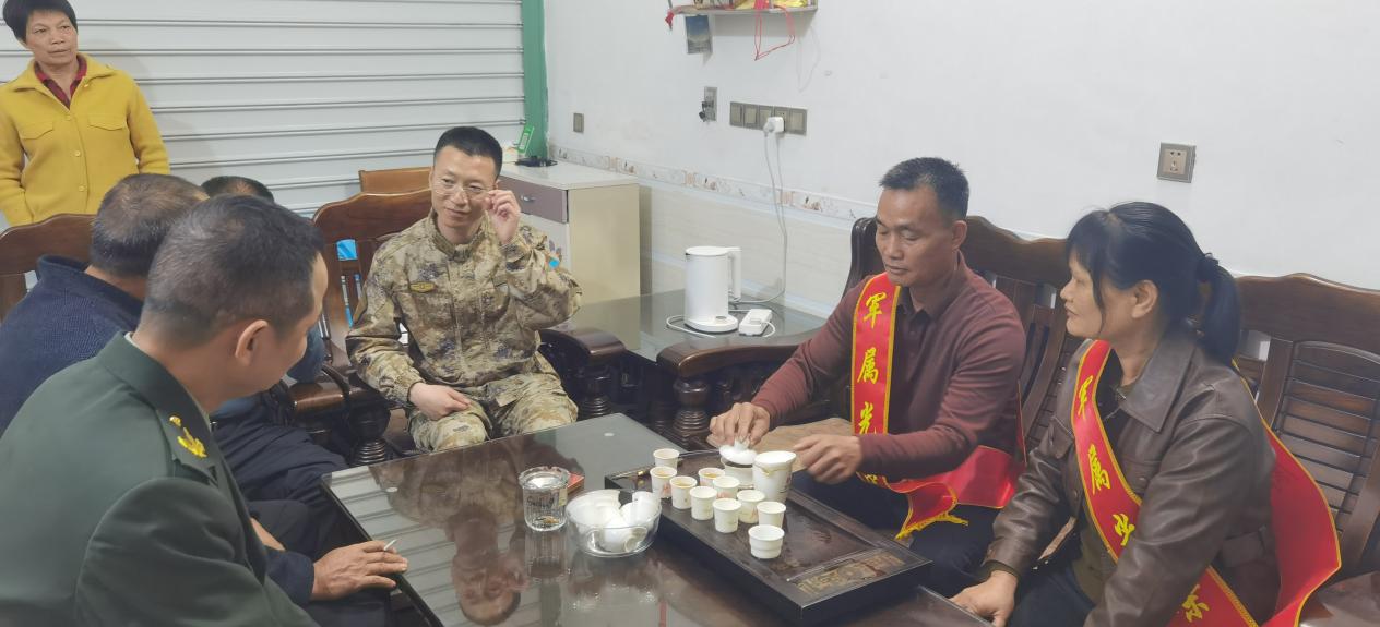送喜报现场,工作人员向军属宣读三等功表彰决定,为林锦聪家属佩戴鲜艳的光荣绶带,并送上慰问金。不少村民闻讯冒雨赶来,纷纷向军属道贺,现场洋溢着喜庆热烈的氛围。工作人员与军属亲切交谈,详细了解他们的生活情况,对林锦聪在部队取得的优异成绩表示祝贺,感谢他们为国家培养了好军人、为部队送去了好人才。林锦聪家属表示,会叮嘱孩子继续扎根军营、刻苦训练,争取再立新功,为家乡增光添彩。