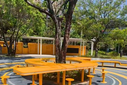其中,运动体验区配备了专供轮椅使用者使用的健身器材,周边设有陪护座椅,安全圆角设计防止磕碰;感官花园区选用米仔兰、含笑等芳香植物,叶片触感友好、色彩分层明显,让视障人士和老年人通过嗅觉与触觉感知自然;无碍交流区配套无障碍厕所、遮雨连廊等便民设施;理念宣传区则通过展示墙普及《无障碍环境建设法》及残障名人故事。