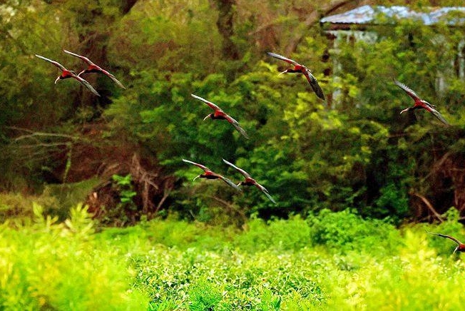 记者从福建省观鸟协会获悉,4月6日下午3时许,9只国家一级保护野生动物——彩鹮现身连江县山堂村上空。这群通身闪耀金属光泽的“稀客”在空中盘旋约30分钟后,向东南方向飞去,引得在场观鸟爱好者连呼“难得”。