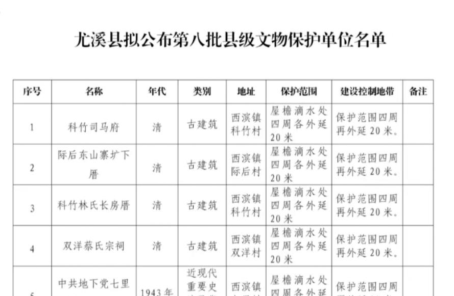 近日,三明尤溪县文体和旅游局拟公布第八批县级文物保护单位名单,本批次共有17处文物点入选。