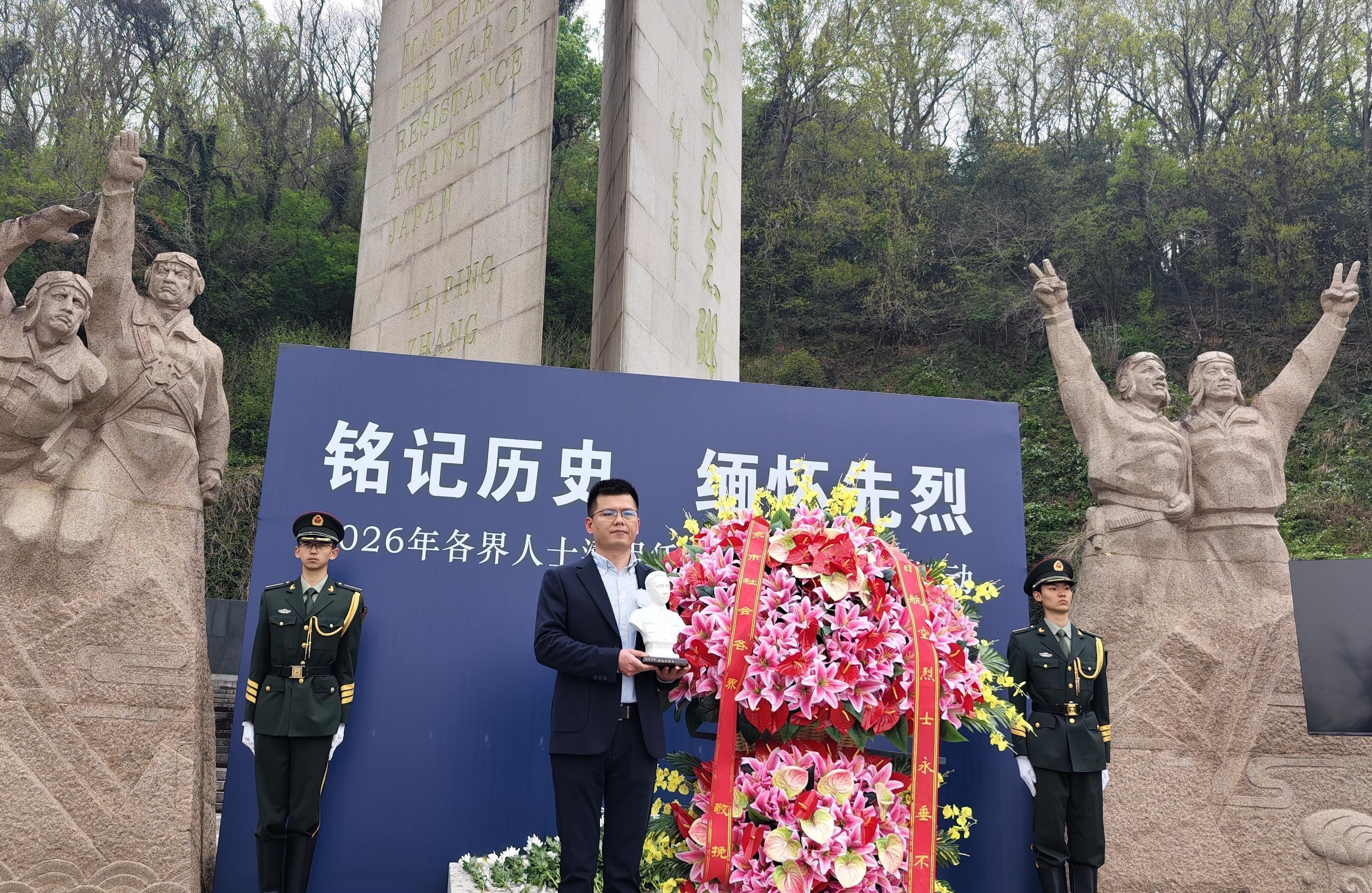 4月4日,南京抗日航空烈士纪念馆松柏肃立。泉州德化籍抗日航空英烈萧德清的后人萧树林受邀专程从德化赶到南京,参加一年一度的清明公祭活动,并现场捐赠“中国白”萧德清陶瓷雕像。