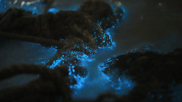 4月5日晚,平潭长江澳海域海浪翻涌,沙滩上早已挤满了翘首以盼的人群。倏忽间,漆黑的海水泛起一道幽蓝,一片梦幻的蓝色迅速浸染整个海面,好似梦境一般。“出来了!”人群中爆发出震耳欲聋的欢呼,快门声连成一片。