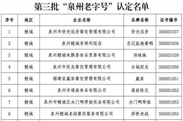 近日,泉州市商务局下发《关于认定第三批“泉州老字号”的通知》,经过企业申报、各地商务主管部门推荐、专家评审、对外公示等一系列规范程序,正式认定69个企业字号为第三批“泉州老字号”。至此,泉州市级老字号总量攀升至170家,本土老字号品牌梯队愈发完善,为世遗泉州商贸文化传承注入新的活力。