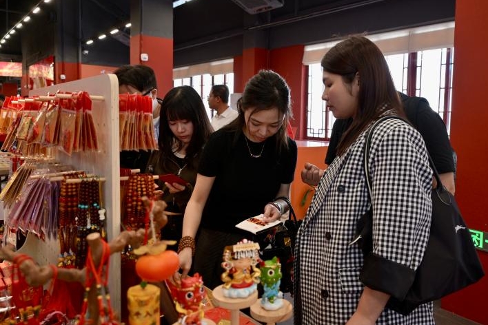 位于祖庙天后广场的“湄洲妈”文创旗舰馆,占地面积约1000平方米,是集妈祖文创产品展示、销售、文化传播于一体的复合空间。Q版“萌妈”、冰箱贴、文化衫、平安糕……在这里,兼具传统韵味与现代审美的文创产品琳琅满目,吸引众多游客驻足选购,也让参访团直观感受到妈祖文创产业的创新活力与发展潜力。