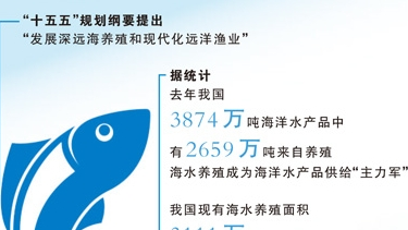 向海洋要热量、要蛋白、扩大食物供给,始终要依靠科技赋能。“十五五”规划纲要提出,“发展深远海养殖和现代化远洋渔业”。据统计,我国现有海水养殖面积3111万亩,进一步开拓这座“蓝色粮仓”,潜力巨大。近年来,沿海各地培育出大黄鱼“甬岱1号”“富发1号”、金鲳“晨海1号”等多个适合深远海养殖的新品种;“陆海接力”“南北接力”等绿色养殖模式持续创新推广;15万吨级智慧渔业大型养殖工船“国信1号2—2”,探索鲑鳟鱼“船载舱养”……从擦亮水产“中国芯”、打造蓝色种业,到陆基和近海养殖加快绿色转型,再到发展大型养殖工船、深远海智能网箱等现代设施装备,我国海洋渔业正逐步走向信息化、智能化、现代化,发展动能愈加澎湃。