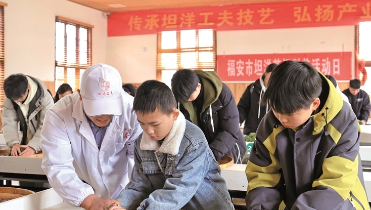 福安制茶大师在教孩子揉捻 李郁 摄