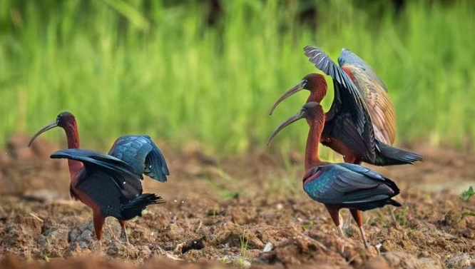 4月12日,宁德市观鸟爱好者在市区东湖公园大门山附近水域,首次观测并记录到国家一级保护动物彩鹮踪迹,3只彩鹮翩跹驻足,为宁德东湖湿地鸟类记录增添重要新成员,也成为宁德市生态文明建设成效的生动注脚。