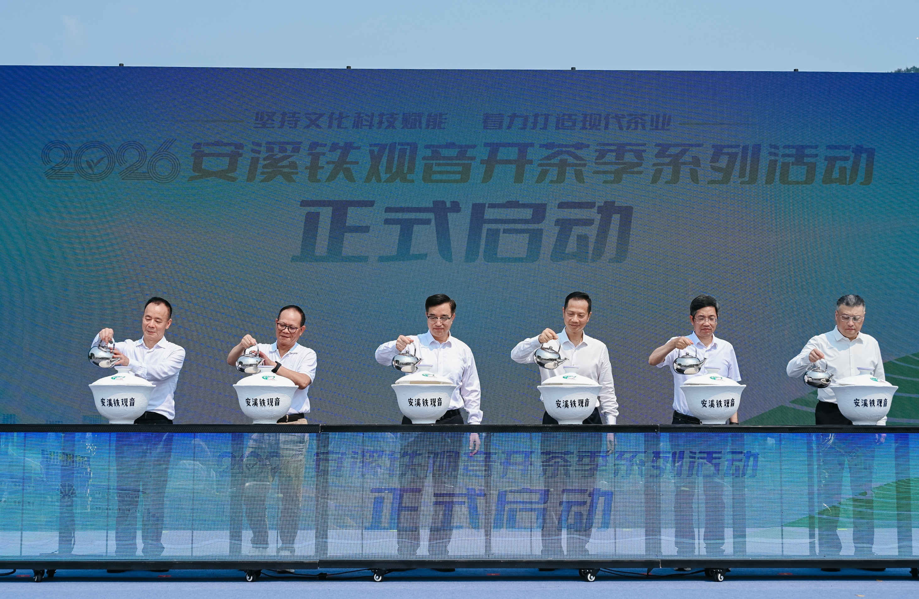 福建日报·新福建客户端4月14日讯(记者 何金 黄琼芬 通讯员 吴圣超)4月14日,随着一声声“开茶咯——”的呼喊在安溪县芦田镇云岭茶庄园回荡,2026安溪铁观音开茶季正式拉开帷幕。本次活动以“坚持文化科技赋能 着力打造现代茶业”为主题,通过“1个主会场+N个分会场”联动,融合茶文化、茶产业、茶科技,全面展示安溪茶产业从“一片叶”到“全茶链”的转型升级成果。
