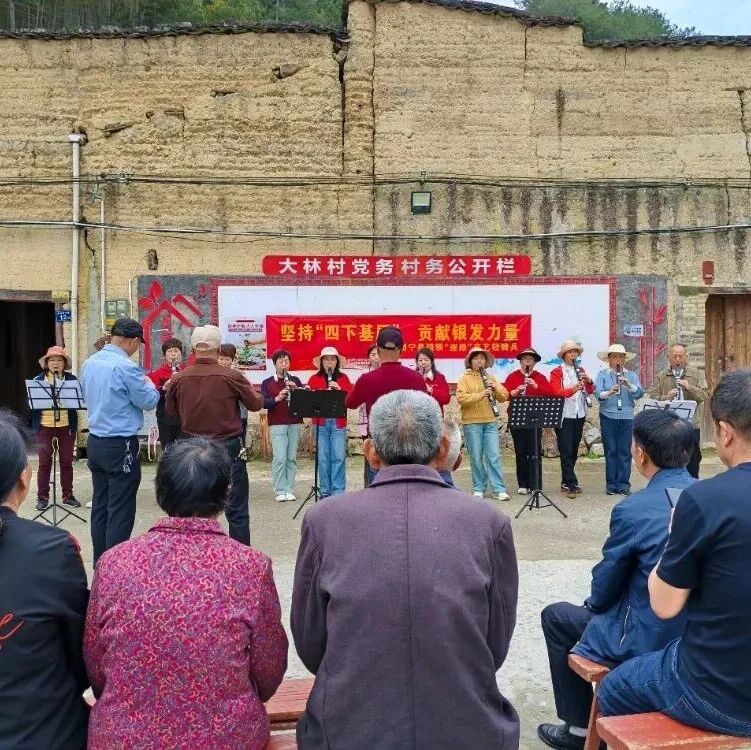4月12日,周宁县银发人才志愿服务队银领“逐绿”文艺轻骑兵电吹管小分队,前往礼门乡大林村,把党的创新理论、方针政策与“四库”重要理念送到田间地头、百姓心间。活动中,队员们用悠扬的电吹管演奏经典红歌与主旋律乐曲,把理论宣讲融入艺术表演,用乡音传递“党音”,以旋律凝聚民心。现场掌声不断,一片干群同心、其乐融融的温馨景象。“我们将以文艺为桥、以服务为媒,让党的创新理论更接地气、更入人心,也为践行‘四库’重要理念、助力乡村全面振兴注入温暖力量。”文艺轻骑兵电吹管小分队队员们表示。