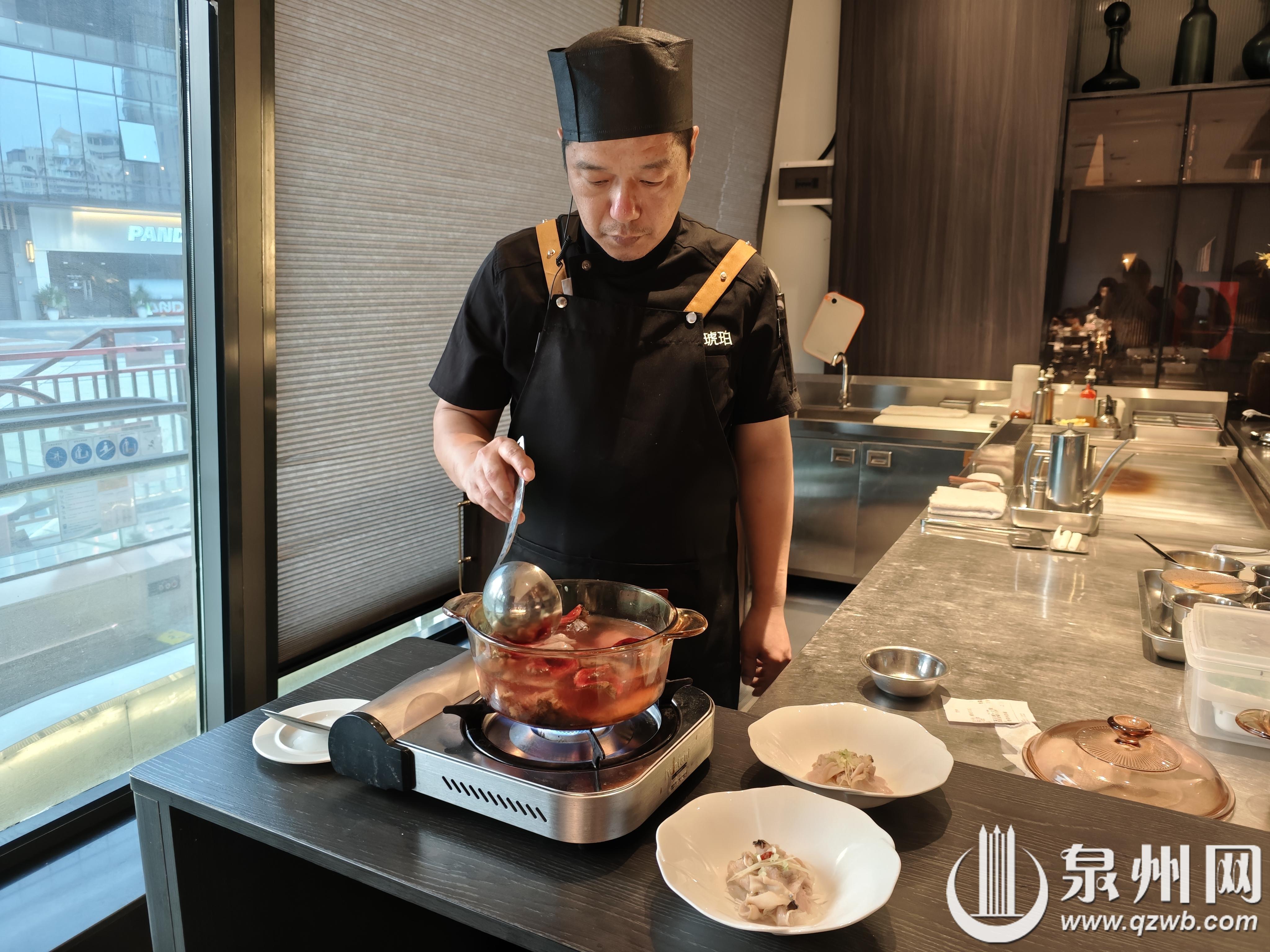 13日傍晚,在“世界美食之都”泉州,应在场海内外宾客邀请,琥珀餐厅总厨吴俊雄现场展示鸡汤汆海蚌的制作全过程,引得宾客啧啧称奇。鸡汤汆海蚌不仅是福建饮食文化的代表,更是映照闽台饮食同根同源的鲜活载体,每一缕鲜香里,都萦绕着两岸血脉相连、文化相融的深厚情谊。
